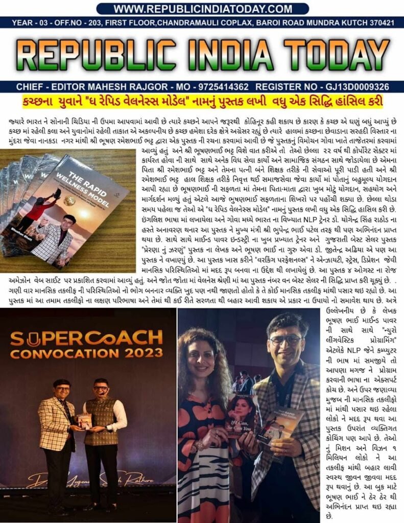 Bhushan Bhatt is life coach, mental health guru and Author of the of “The Rapid Mental Wellness Model,” and creator of  “Unlocking the Secrets of Work-Life Wellness” program for working professional has over 22 years of experience in the corporate world, With expertise in Mind Power and Neuro-Linguistic Programming (NLP), Bhatt has proactively pursued professional development in the field of personal growth and mental wellness. He has published articles in local newspapers on various topics of mental wellness. Bhatt also provides personalised one-on-one sessions and conducts training programs for working professionals, guiding them on a journey of self-discovery and unlocking their true potential. His mission is to transform the lives of one million working professionals, focusing on mental wellness as an integral part of achieving success, happiness, and overall well-being. Bhatt’s passion for mental wellness and belief in personal growth fuels his mission to empower working professionals.